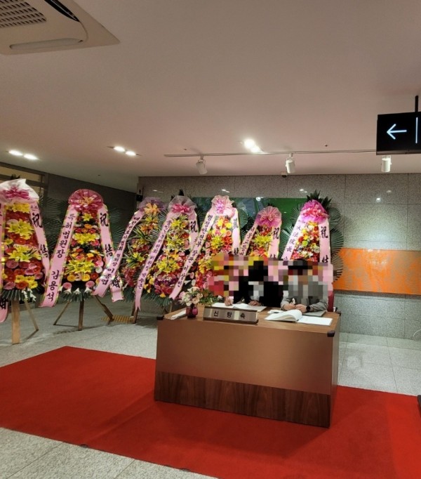 KU컨벤션웨딩홀으로 배송된 축하화환3단