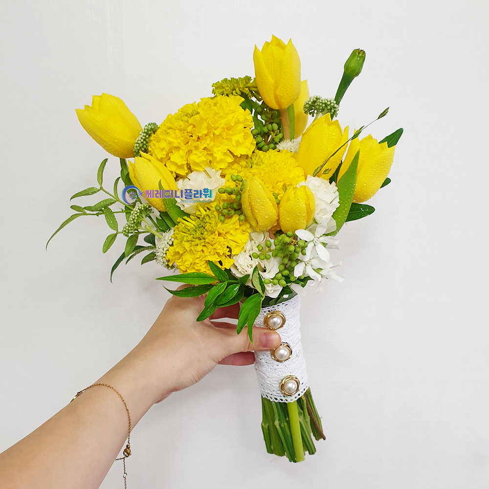 노란튤립 메리골드 부케